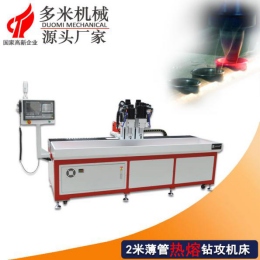 多米熱熔鉆攻機采用自主研發(fā)CNC數(shù)控系統(tǒng),無需編程可直接導“CAD”圖檔生成程序。雙主軸分別裝夾熱熔鉆頭和擠壓絲錐,一次裝夾完成拉伸孔和攻絲兩道工序,節(jié)省時間的同時也避免二次裝夾帶來的誤差。熱熔鉆攻機主軸添加散熱裝置,因為熱熔鉆是通過特殊的熱熔鉆頭部與產(chǎn)品表面摩擦鉆孔,會有700~800度上下的高溫,主軸加散熱裝置,可以降低連續(xù)鉆孔而產(chǎn)生的熱量,也可以延長熱熔鉆的壽命,最主要還可以保證熱熔鉆攻機的主軸(內(nèi)部結(jié)構(gòu)的刀桿和本體)不會因過高的溫度而損壞。